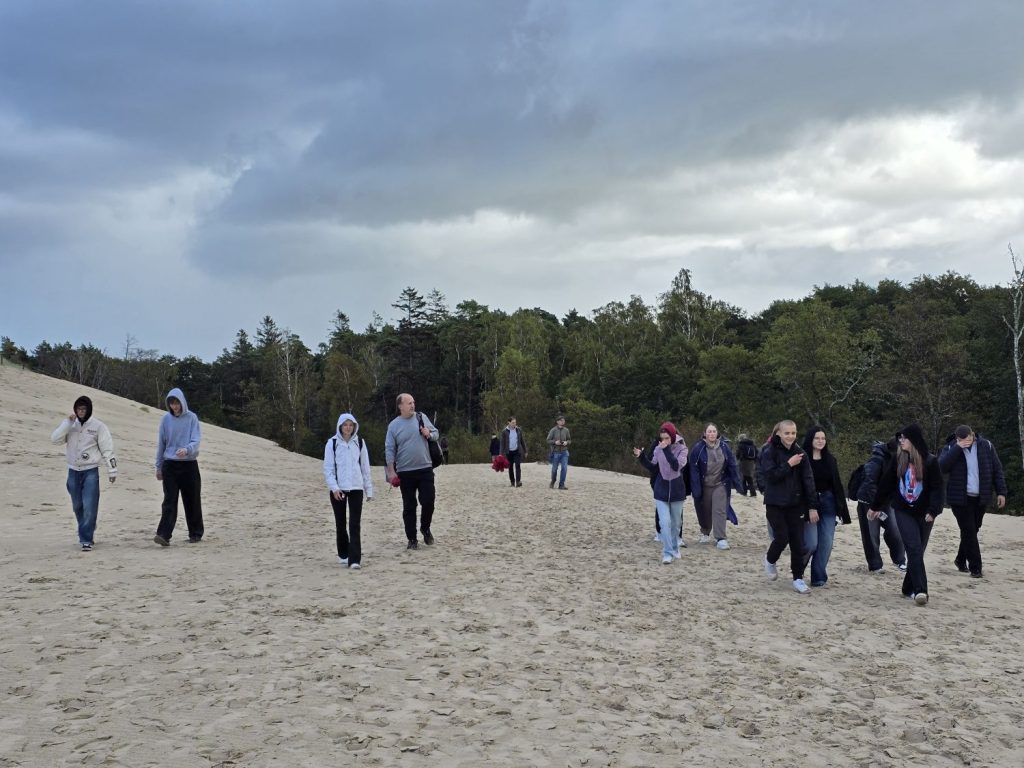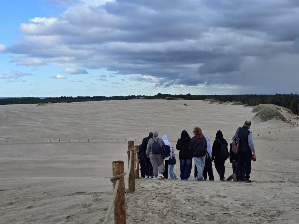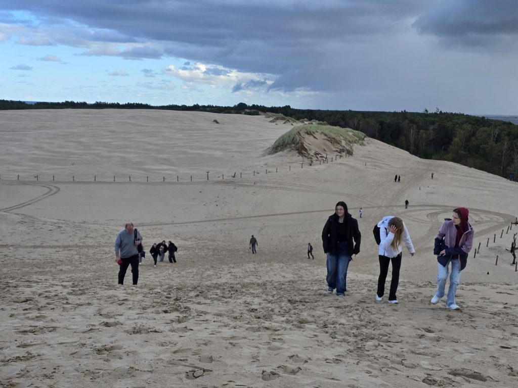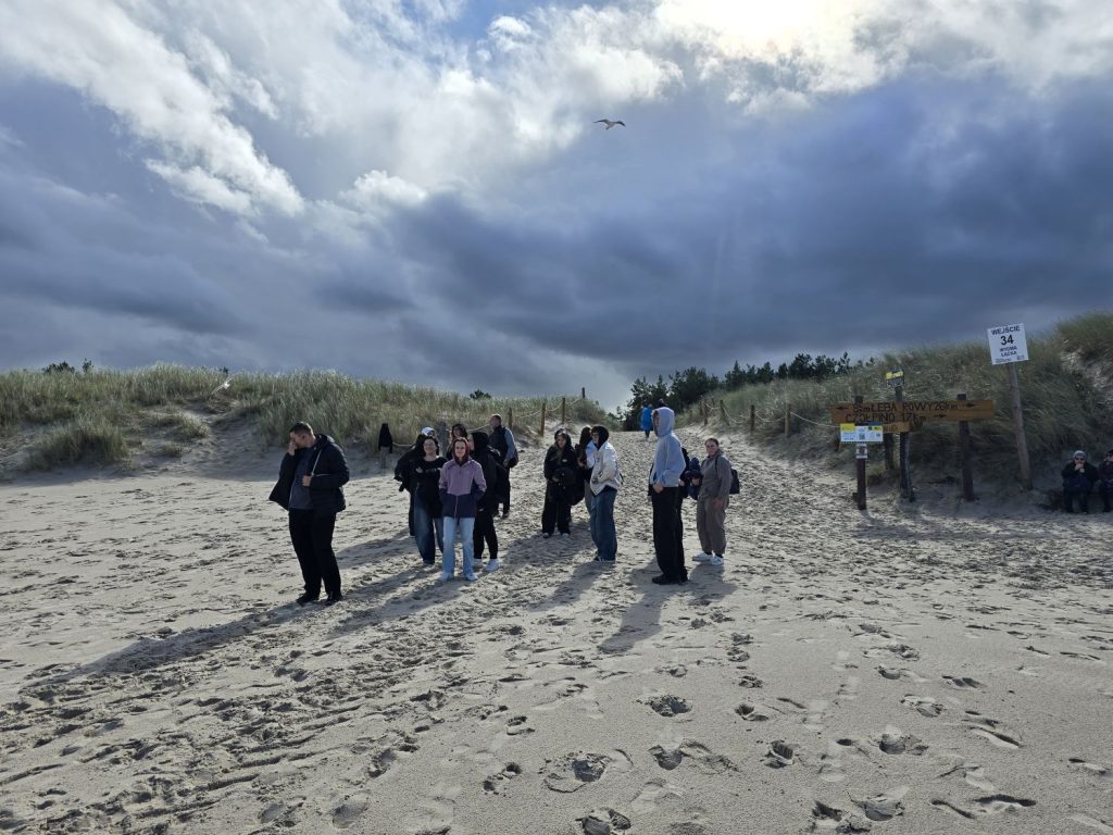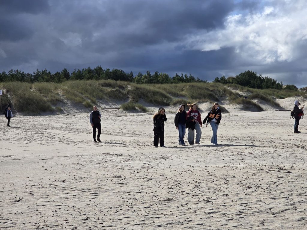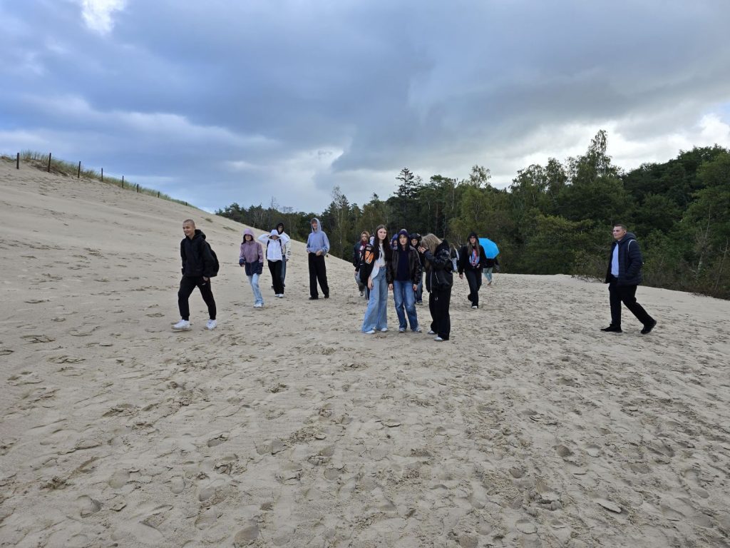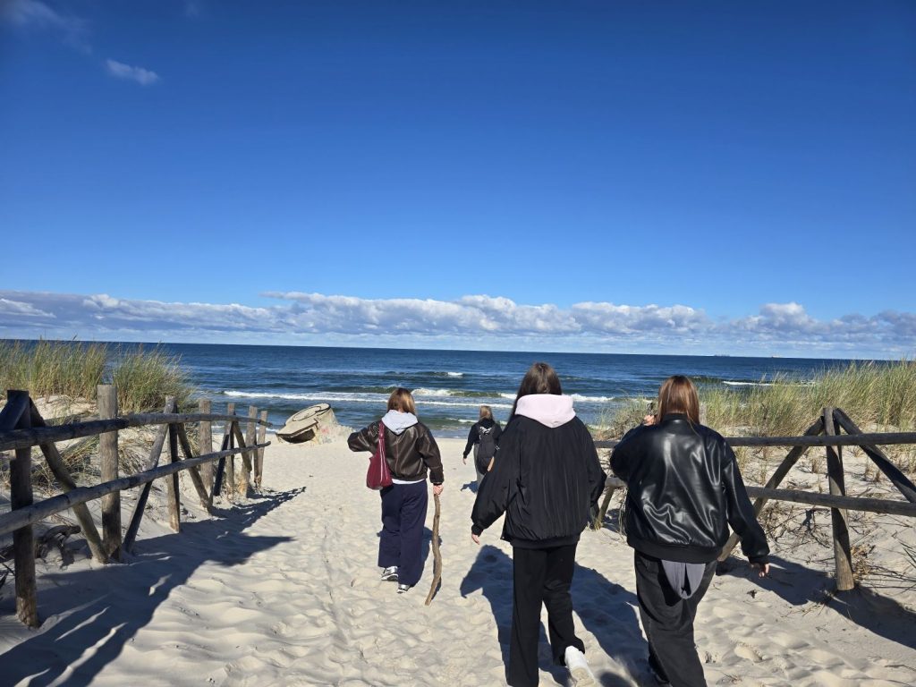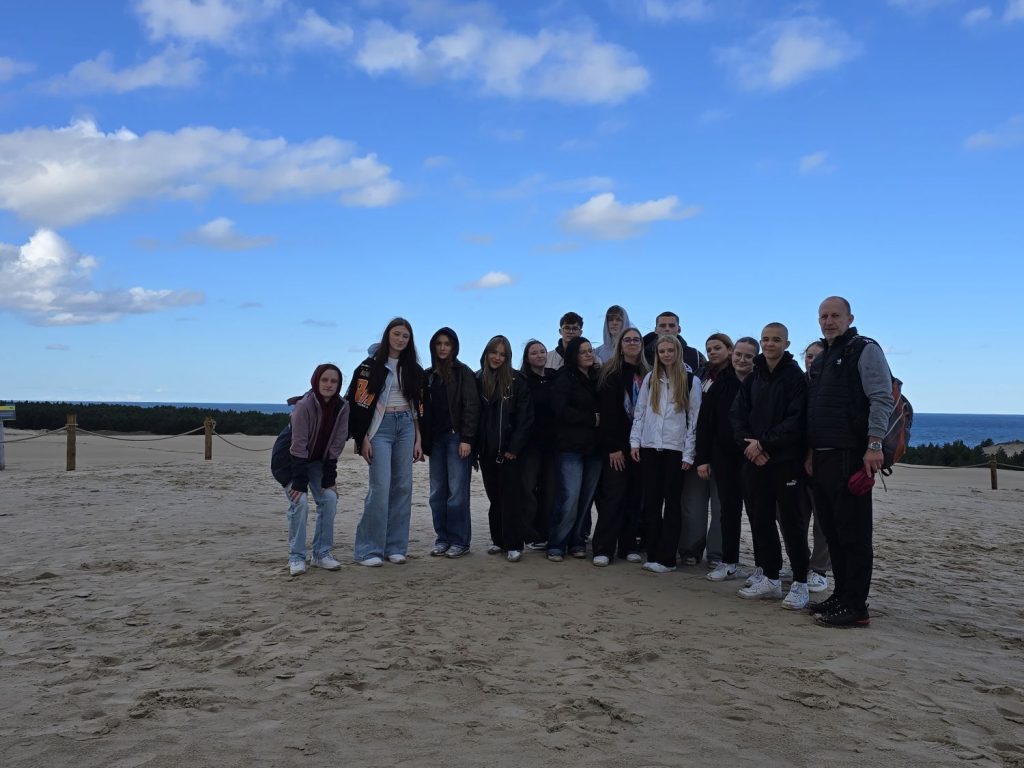 Co roku w ostatni czwartek września obchodzony jest Światowy Dzień Morza. Właśnie w tym tygodniu grupa uczniów z kl. 3b oraz kl. 4a przebywa nad Morzem Bałtyckim korzystając jeszcze ze słonecznej pogody oraz z uroków Słowińskiego Parku Narodowego i Łeby. „Pierwszego dnia, po dotarciu do Łeby i zakwaterowaniu, przeszliśmy Aleją Prezydentów Rzeczypospolitej Polskiej i dotarliśmy nad morze, by podziwiać zachód słońca. Kolejnego dnia wyruszyliśmy na Ruchome Wydmy w Słowińskim Parku Narodowym, by zobaczyć największą w Europie ruchomą Wydmę Łącką. Jest to zasypana piaskiem wieś Łączka. Najwyższy punkt tego wzniesienia, dochodzi niekiedy do 42 m n.p.m., nazywa się Łącką Górą. W środę udaliśmy się meleksem do Sea Park w Sarbsku, największego polskiego fokarium, gdzie oglądaliśmy m.in. pokazy fok i uchatek, zobaczyliśmy replikę wojennego galeonu z XVII wieku, odwiedziliśmy prehistoryczne oceanarium 3D, zwiedziliśmy muzeum Marynistyczne oraz zobaczyliśmy miniatury wszystkich latarni polskiego wybrzeża. W czwartek zwiedziliśmy latarnię morską Stilo, widoczną z daleka trzykolorową wieżę, która leży na wzniesieniu w Rezerwacie Przyrody Mierzeja Sarbska. Następnie wróciliśmy brzegiem morza do Łeby, by wypocząć przed podróżą powrotną.”