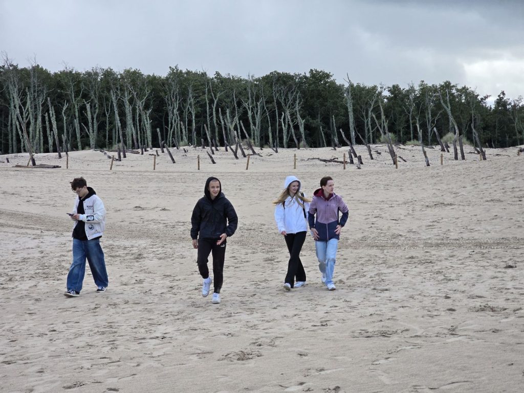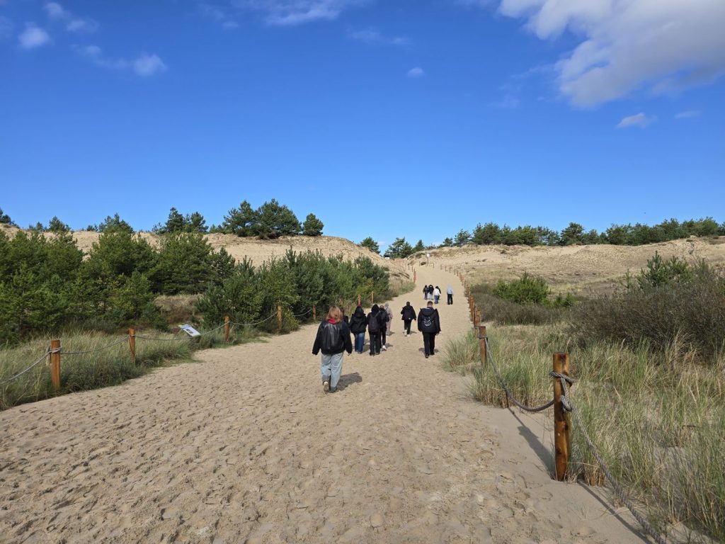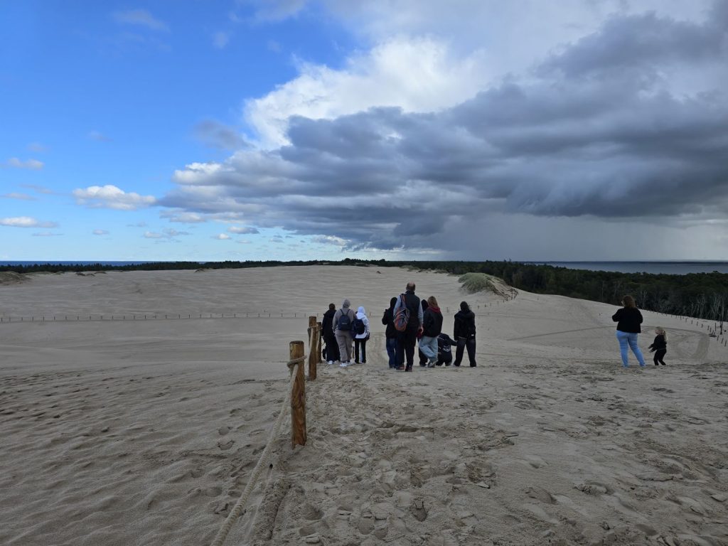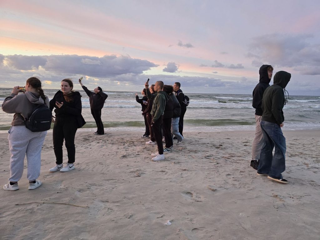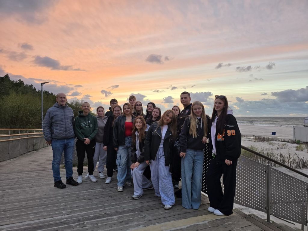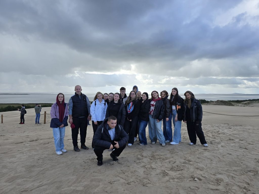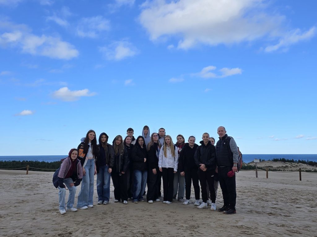 Co roku w ostatni czwartek września obchodzony jest Światowy Dzień Morza. Właśnie w tym tygodniu grupa uczniów z kl. 3b oraz kl. 4a przebywa nad Morzem Bałtyckim korzystając jeszcze ze słonecznej pogody oraz z uroków Słowińskiego Parku Narodowego i Łeby. „Pierwszego dnia, po dotarciu do Łeby i zakwaterowaniu, przeszliśmy Aleją Prezydentów Rzeczypospolitej Polskiej i dotarliśmy nad morze, by podziwiać zachód słońca. Kolejnego dnia wyruszyliśmy na Ruchome Wydmy w Słowińskim Parku Narodowym, by zobaczyć największą w Europie ruchomą Wydmę Łącką. Jest to zasypana piaskiem wieś Łączka. Najwyższy punkt tego wzniesienia, dochodzi niekiedy do 42 m n.p.m., nazywa się Łącką Górą. W środę udaliśmy się meleksem do Sea Park w Sarbsku, największego polskiego fokarium, gdzie oglądaliśmy m.in. pokazy fok i uchatek, zobaczyliśmy replikę wojennego galeonu z XVII wieku, odwiedziliśmy prehistoryczne oceanarium 3D, zwiedziliśmy muzeum Marynistyczne oraz zobaczyliśmy miniatury wszystkich latarni polskiego wybrzeża. W czwartek zwiedziliśmy latarnię morską Stilo, widoczną z daleka trzykolorową wieżę, która leży na wzniesieniu w Rezerwacie Przyrody Mierzeja Sarbska. Następnie wróciliśmy brzegiem morza do Łeby, by wypocząć przed podróżą powrotną.”