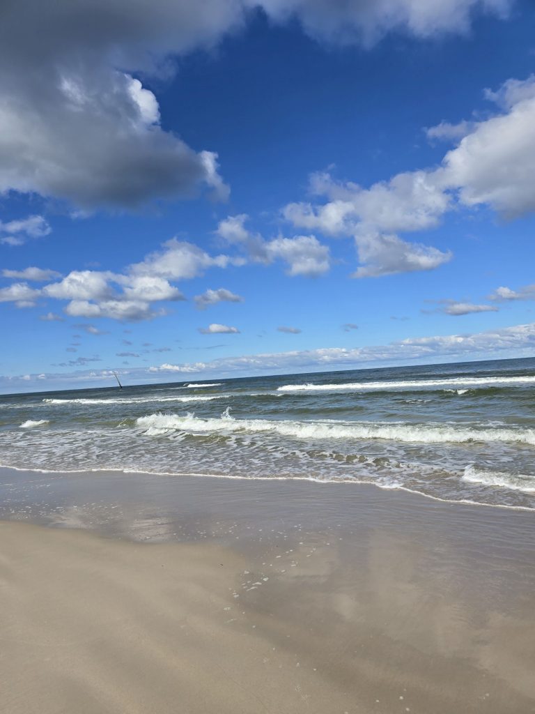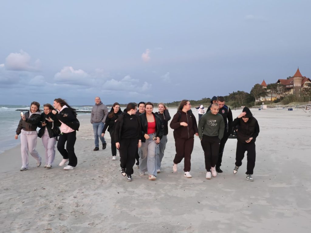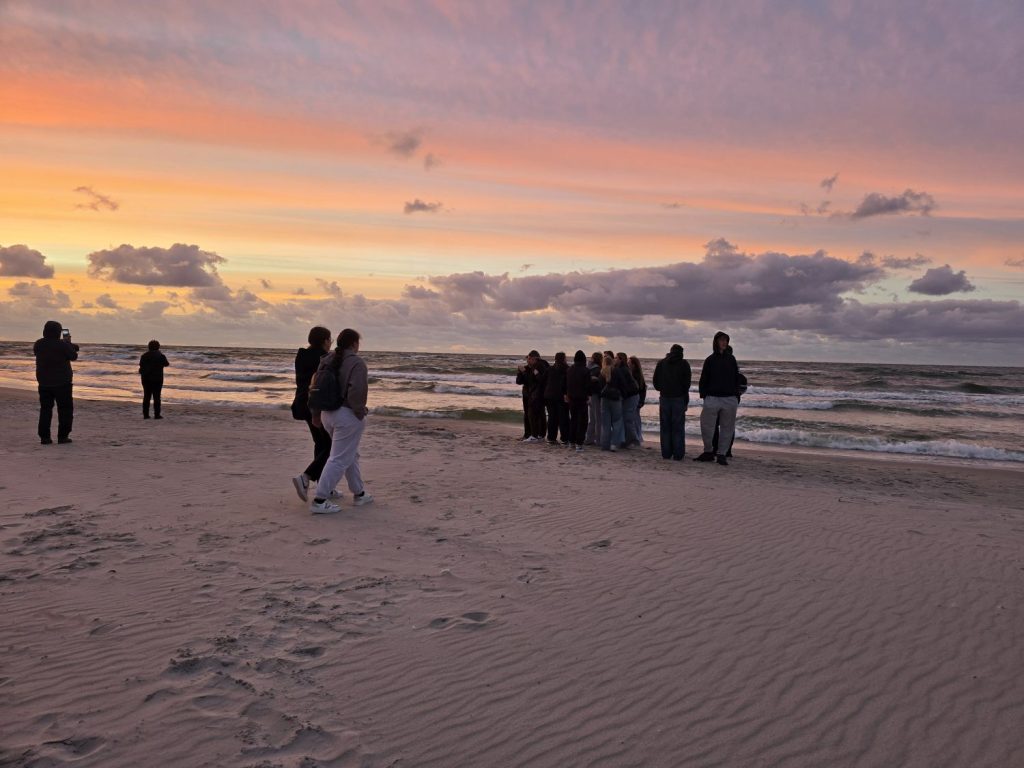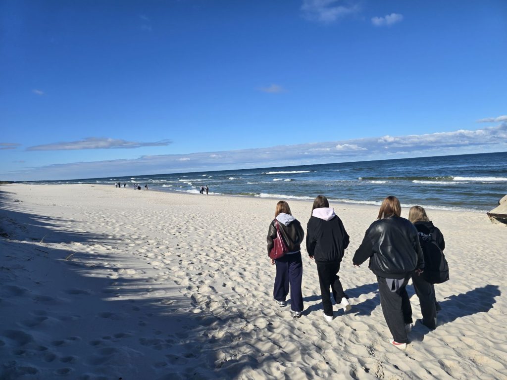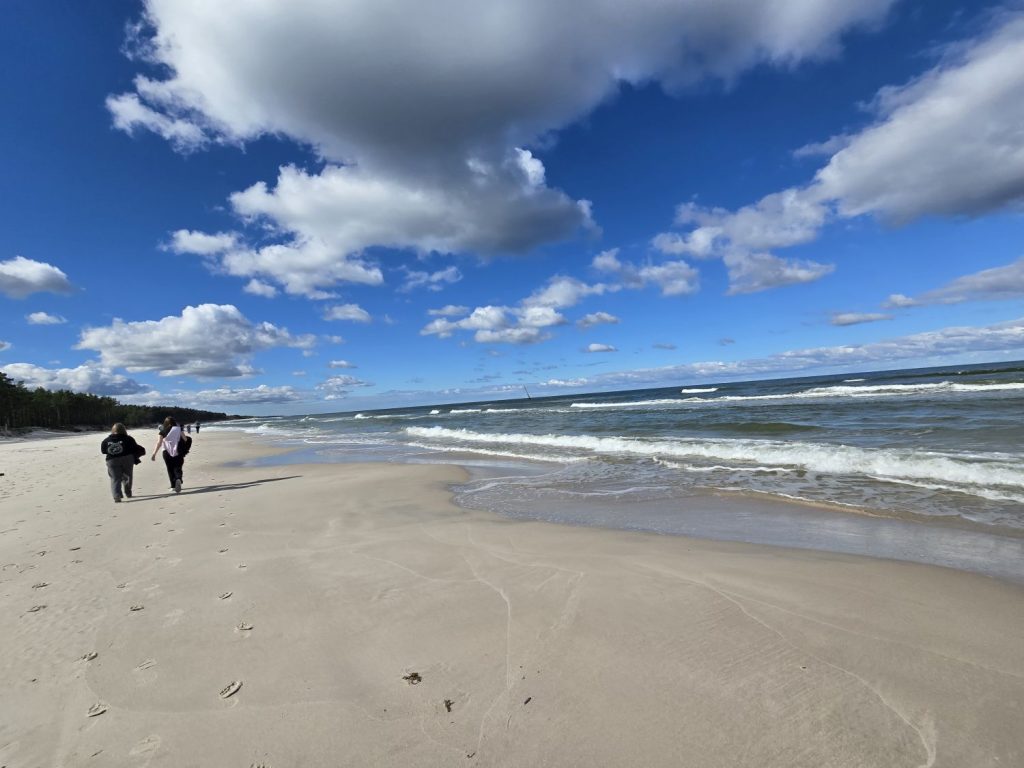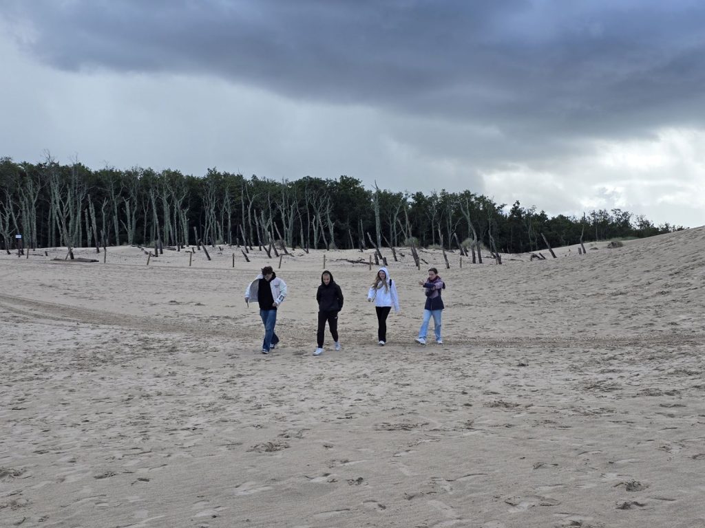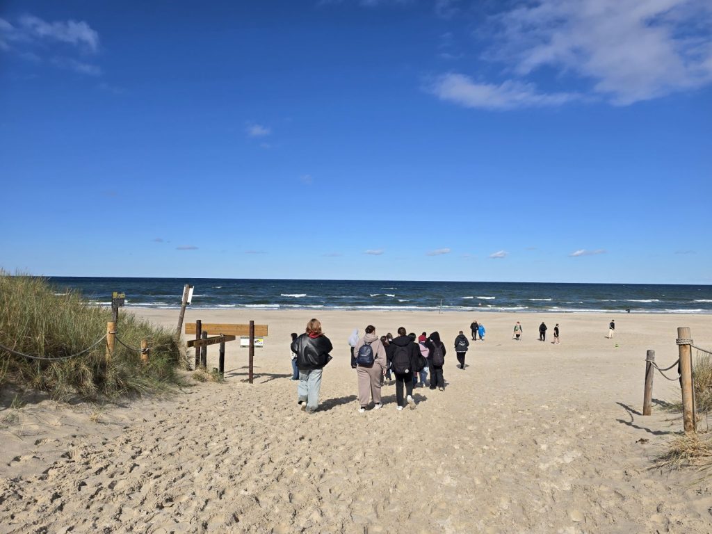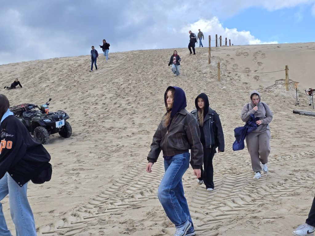 Co roku w ostatni czwartek września obchodzony jest Światowy Dzień Morza. Właśnie w tym tygodniu grupa uczniów z kl. 3b oraz kl. 4a przebywa nad Morzem Bałtyckim korzystając jeszcze ze słonecznej pogody oraz z uroków Słowińskiego Parku Narodowego i Łeby. „Pierwszego dnia, po dotarciu do Łeby i zakwaterowaniu, przeszliśmy Aleją Prezydentów Rzeczypospolitej Polskiej i dotarliśmy nad morze, by podziwiać zachód słońca. Kolejnego dnia wyruszyliśmy na Ruchome Wydmy w Słowińskim Parku Narodowym, by zobaczyć największą w Europie ruchomą Wydmę Łącką. Jest to zasypana piaskiem wieś Łączka. Najwyższy punkt tego wzniesienia, dochodzi niekiedy do 42 m n.p.m., nazywa się Łącką Górą. W środę udaliśmy się meleksem do Sea Park w Sarbsku, największego polskiego fokarium, gdzie oglądaliśmy m.in. pokazy fok i uchatek, zobaczyliśmy replikę wojennego galeonu z XVII wieku, odwiedziliśmy prehistoryczne oceanarium 3D, zwiedziliśmy muzeum Marynistyczne oraz zobaczyliśmy miniatury wszystkich latarni polskiego wybrzeża. W czwartek zwiedziliśmy latarnię morską Stilo, widoczną z daleka trzykolorową wieżę, która leży na wzniesieniu w Rezerwacie Przyrody Mierzeja Sarbska. Następnie wróciliśmy brzegiem morza do Łeby, by wypocząć przed podróżą powrotną.”