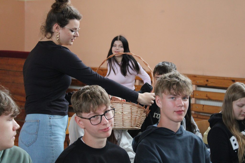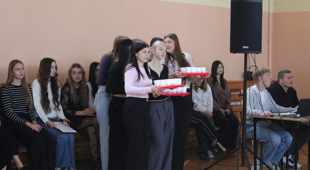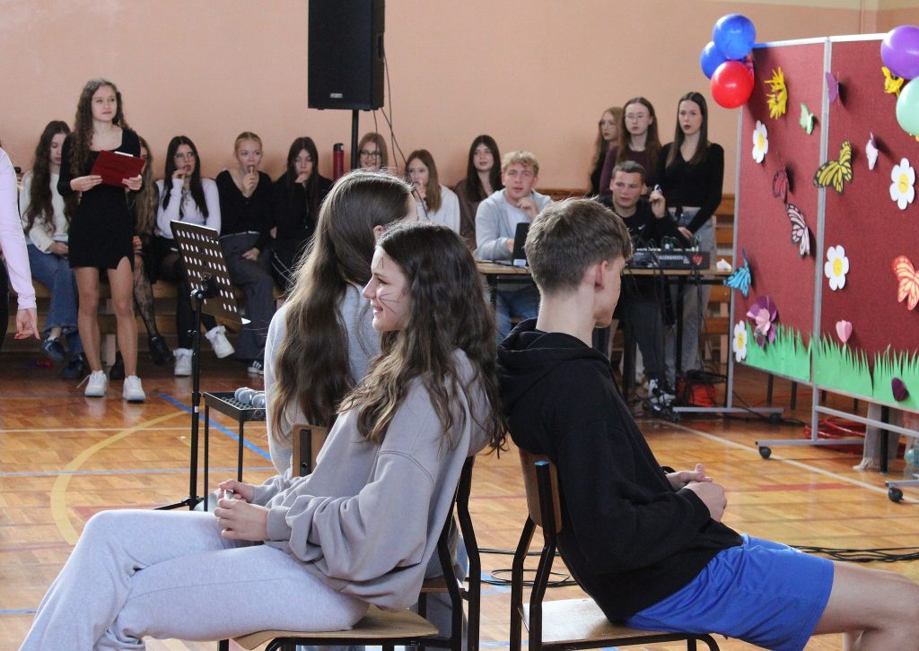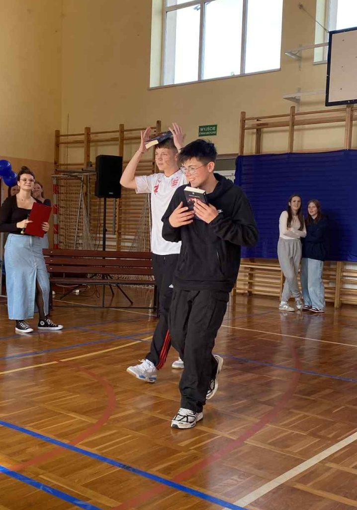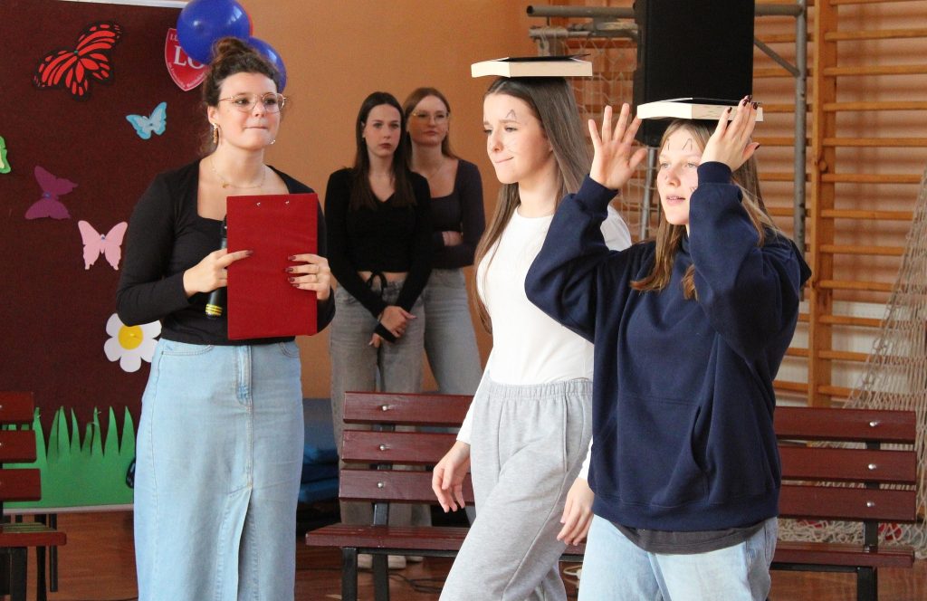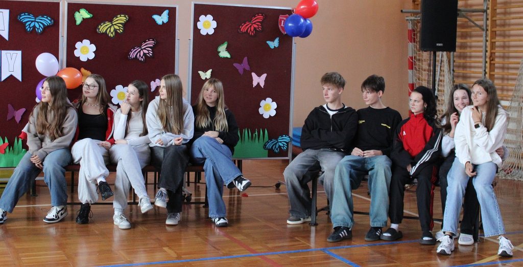 W drugiej części spotkania odbyły się Otrzęsiny, podczas których pierwszoklasiści musieli się wykazać wieloma zabawnymi umiejętnościami. Po wykonaniu zadań zostali przyjęci do grona pełnoprawnych członków naszej społeczności szkolnej.
