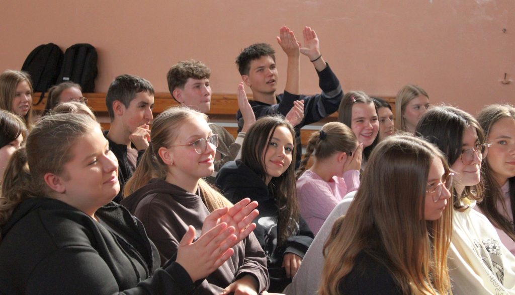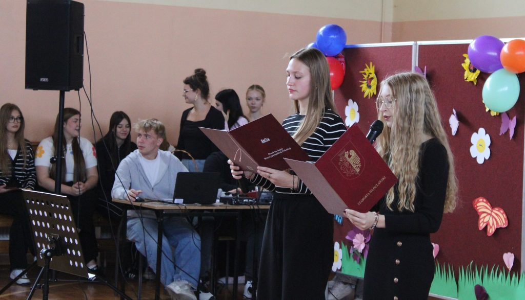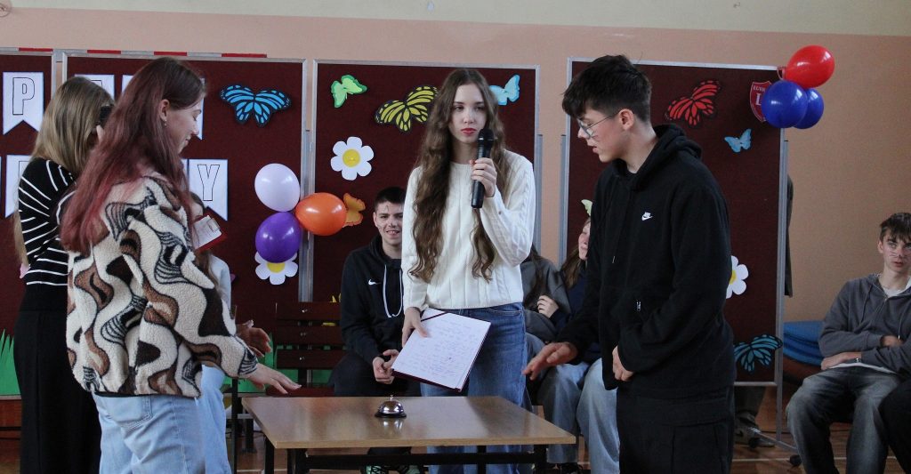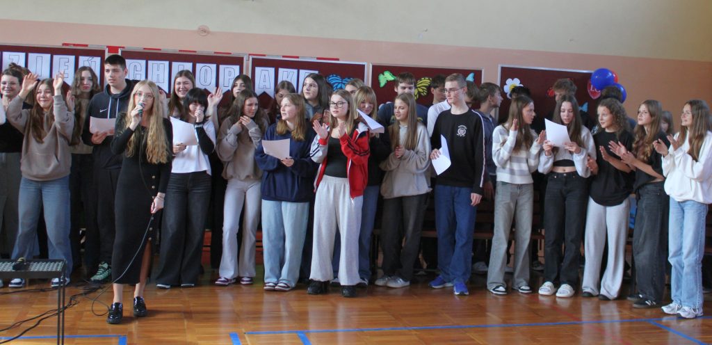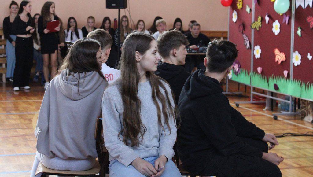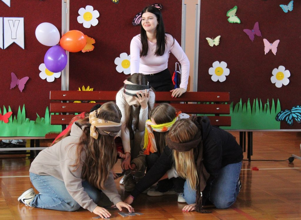 W drugiej części spotkania odbyły się Otrzęsiny, podczas których pierwszoklasiści musieli się wykazać wieloma zabawnymi umiejętnościami. Po wykonaniu zadań zostali przyjęci do grona pełnoprawnych członków naszej społeczności szkolnej.