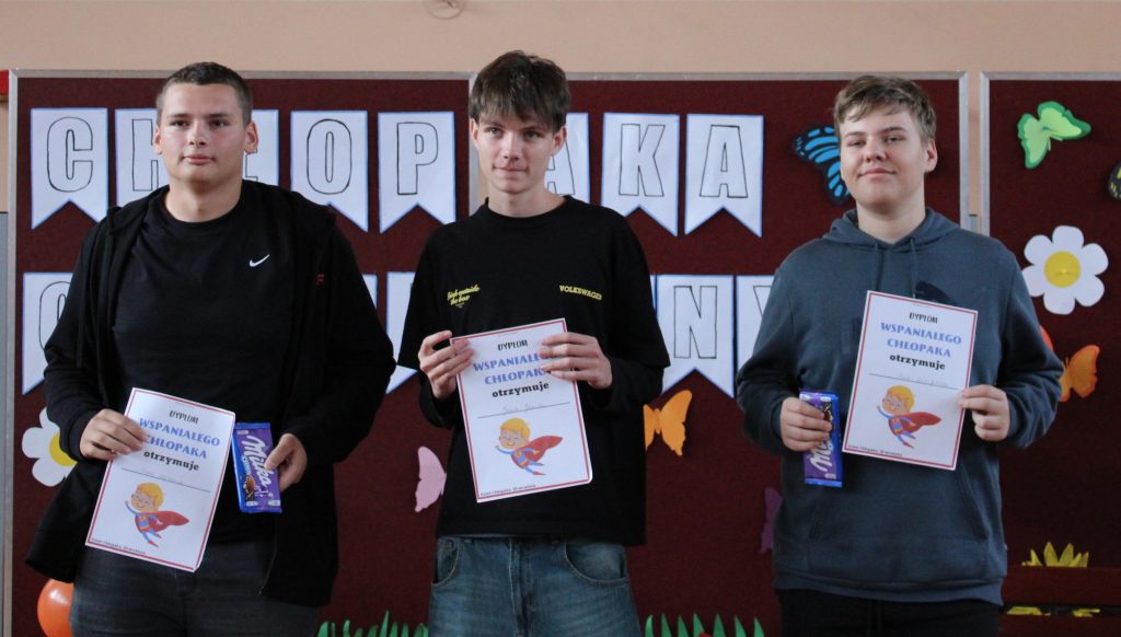 1 października świętowaliśmy Dzień Chłopaka. Uczniowie klasy 3 A przygotowali z tej okazji quiz wiedzy dla swoich szkolnych kolegów. We wcześniejszym głosowaniu dziewczęta wybrały swoich faworytów w kategorii „Naj…chłopak”.