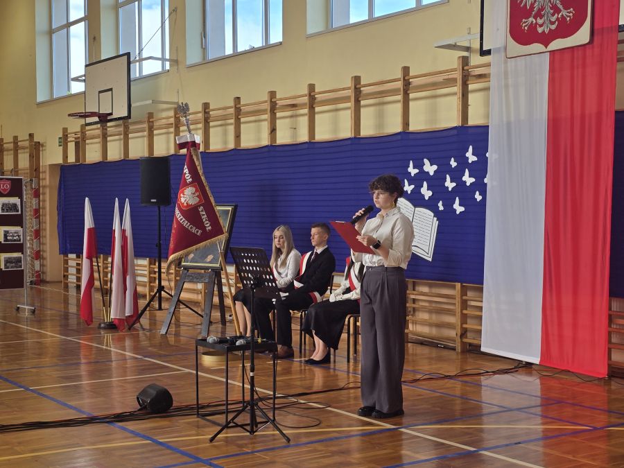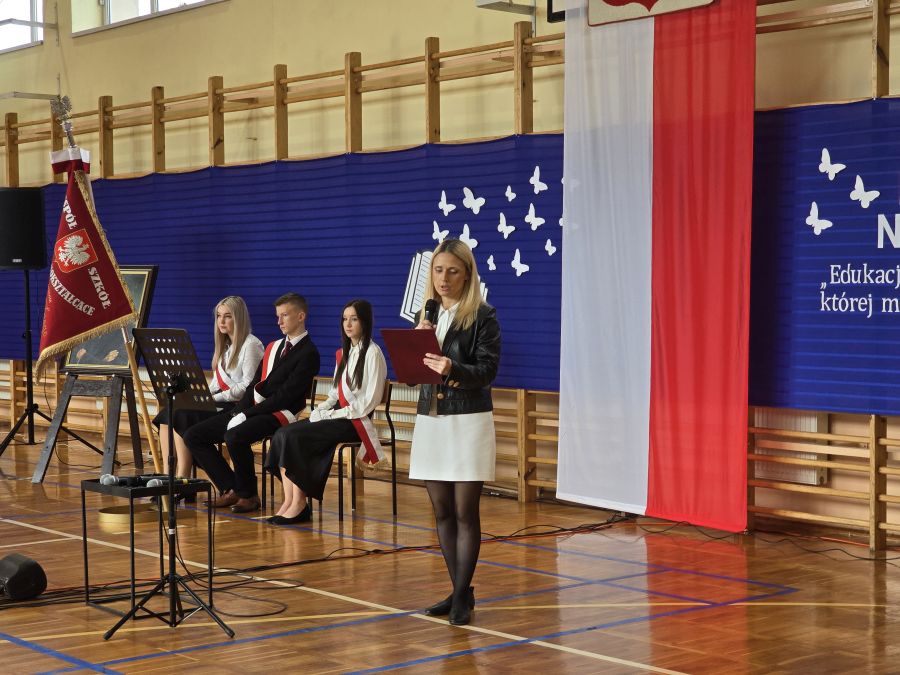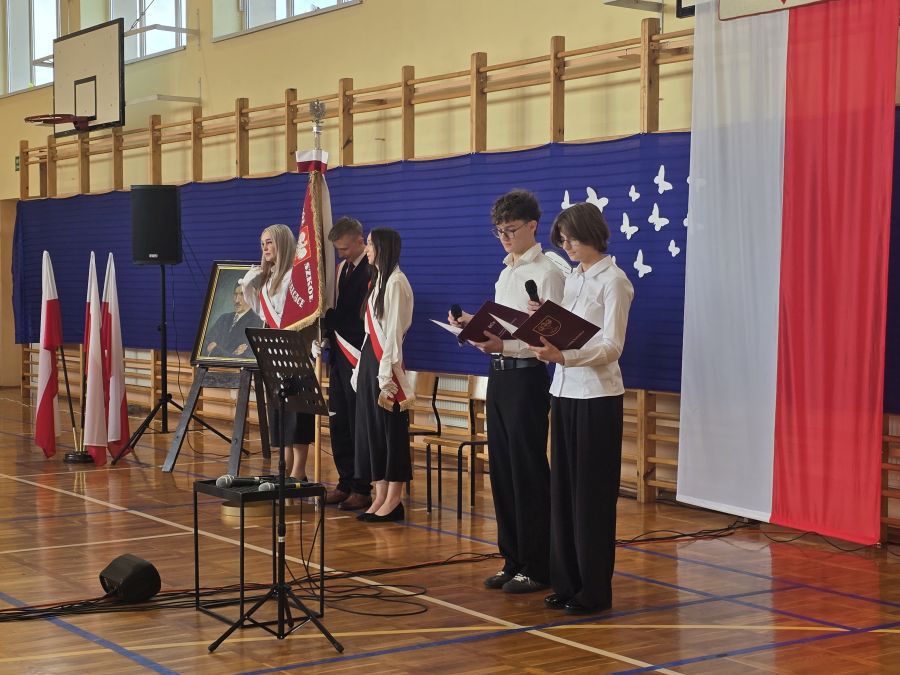 16 października świętowaliśmy wyjątkowe wydarzenie: Dzień Edukacji Narodowej połączony z Dniem Patrona Szkoły – Franciszka Becińskiego oraz ślubowaniem uczniów klas pierwszych na sztandar szkoły. W uroczystości wzięli udział zaproszeni goście, emerytowani nauczyciele oraz pracownicy szkoły, którym serdecznie dziękujemy za obecność i wspólne świętowanie. Uroczysty apel przygotowała kl. 3b uczniów, która podziękowała także nauczycielom za ich codzienną pracę, zaangażowanie i serce wkładane w wychowanie młodego pokolenia. Tego dnia dokonana została zmiana asysty pocztu sztandarowego: dotychczasową asystę tworzyły uczennice kl. 4a Małgorzata Bernaciak oraz Wiktoria Lewandowska, które zastąpiły: Marta Prokopów i Oliwia Perczyńska z kl. 3a.