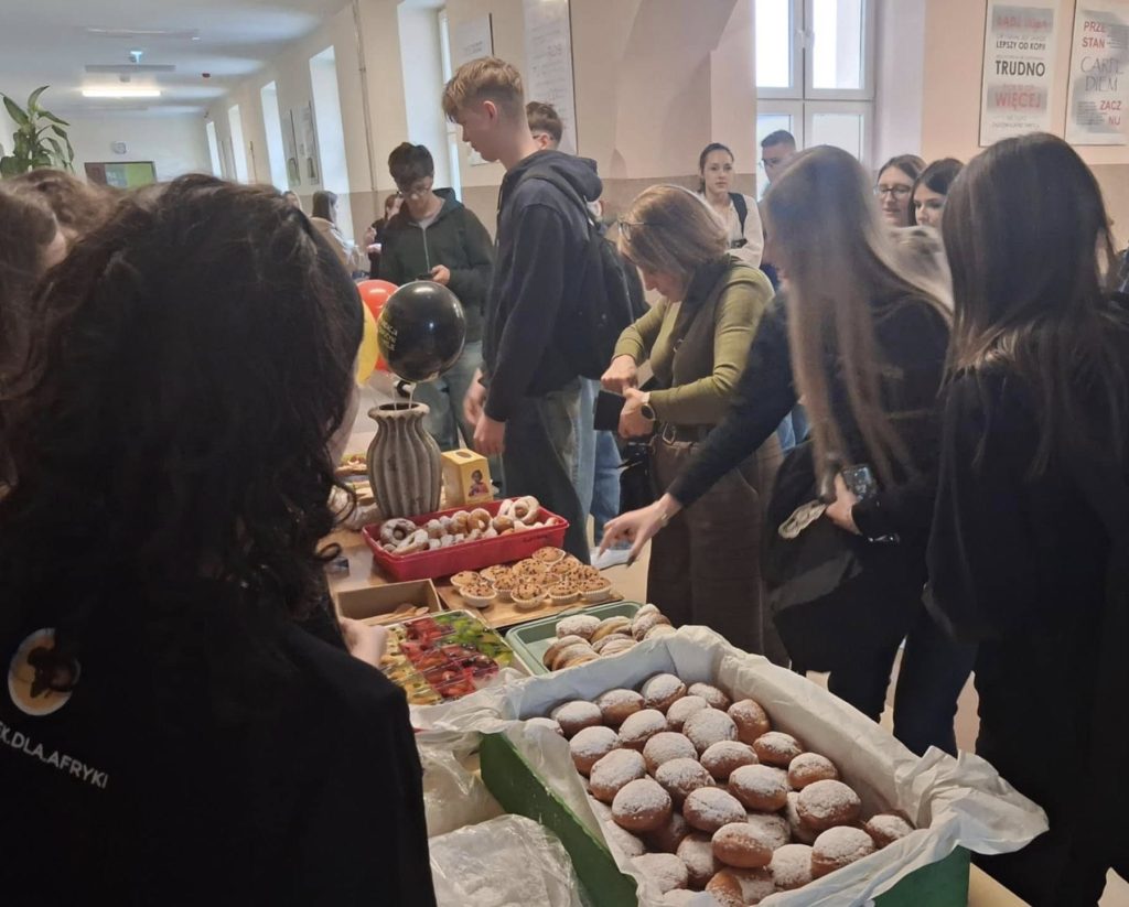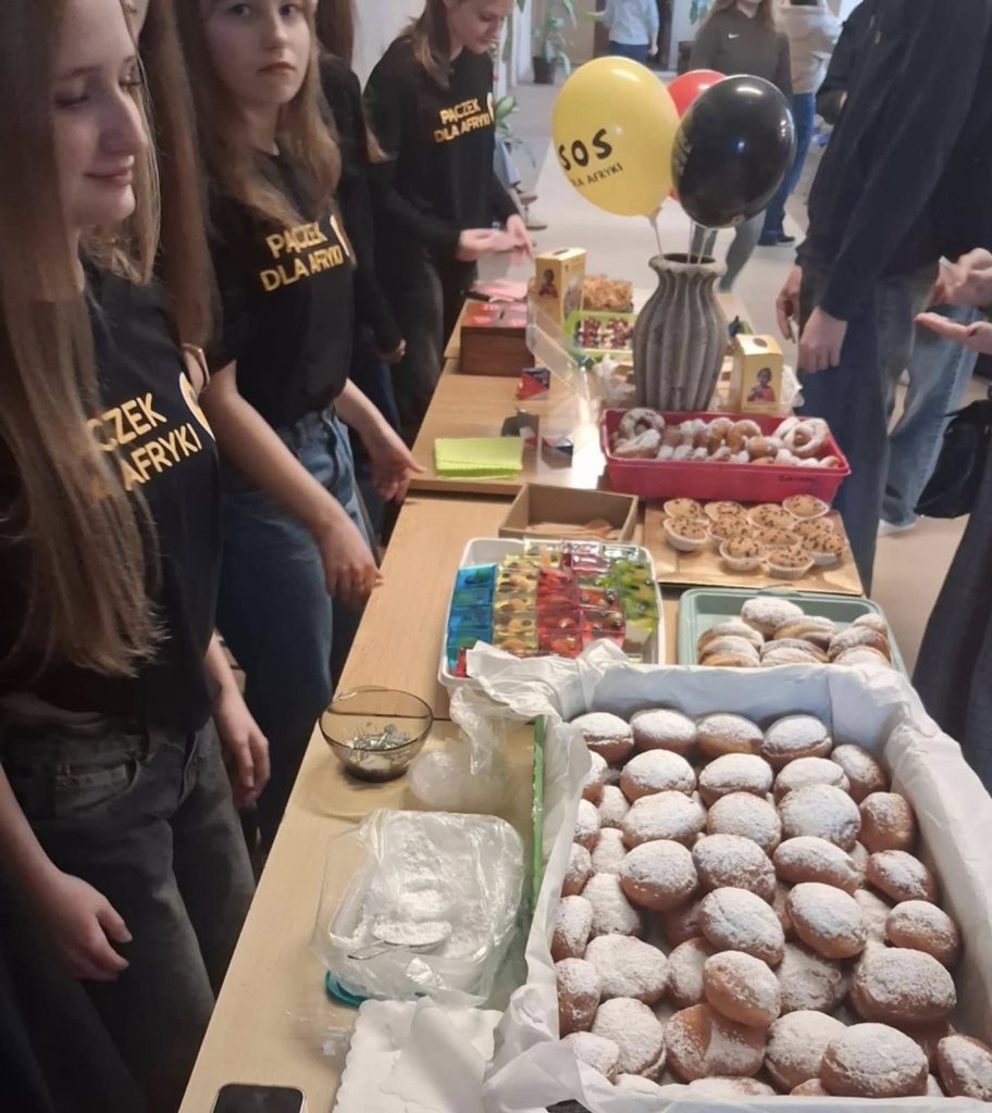 We wtorek, 17 lutego po raz kolejny przyłączyliśmy się do akcji charytatywnej Fundacji Kapucyni i Misje – Pączek dla Afryki. W tym roku wolontariusze z klasy 1b: Amelia, Alicja, Maja, Martyna, Natalia, Julia, Zuzia M., Zuzia P., Piotr i Kacper oraz Julia z kl. 4a stanęli na wysokości zadania i przygotowali przepyszne pączki oraz inne słodkości, które nie tylko cieszyły podniebienia, ale przede wszystkim miały wielkie serce. Dzięki wspólnemu zaangażowaniu uczniów, ich rodziców i całej społeczności szkolnej ponownie pokazaliśmy, że pomaganie może być radosne, twórcze i… bardzo smaczne! Każdy pączek to realne wsparcie dla działań misyjnych i pomoc dla tych, którzy jej potrzebują. Zebraliśmy 835 złotych, które przekażemy fundacji. Dziękujemy wszystkim, którzy wsparli akcję – jesteście wspaniali!