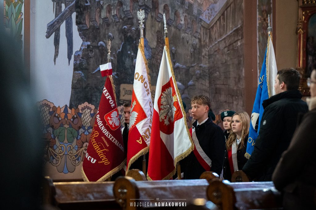 2 marca przedstawiciele naszej społeczności szkolnej wzięli udział w lokalnych obchodach Narodowego Dnia Pamięci Żołnierzy Wyklętych: uczestniczyli we Mszy Świętej w intencji Ojczyzny, złożyli kwiaty pod pomnikiem oraz wzięli udział w spotkaniu w LCDK ” Śladami Niezłomnych” i obejrzeli wystawę ” Reduta Pamięci: Głosy z głębi lasu”.